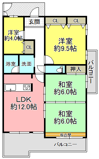 間取内容 LDK12.0帖 洋室9.5帖 洋室4.0帖 和室6.0帖 和室6.0帖