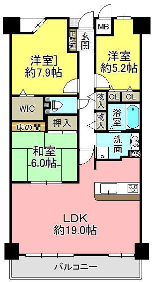 | 間取内容 | LDK19.0帖 洋室7.9帖 洋室5.2帖 和室6.0帖 | ||