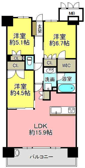 | 間取内容 | LDK15.9帖 洋室6.7帖 洋室5.1帖 洋室4.5帖 | ||