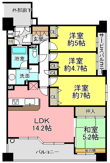 間取内容 LDK14.2帖 洋室7.0帖 洋室5.0帖 洋室4.7帖 和室5.2帖