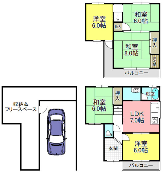 | 間取内容 | DK7.0帖 和室6.0帖 洋室6.0帖 和室8.0帖 和室6.0帖 洋室6.0帖 | ||