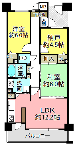 | 間取内容 | LDK12.2帖 和室6.0帖 洋室6.0帖 洋室4.5帖 | ||