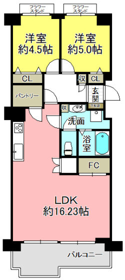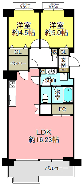 | 間取内容 | LDK16.2帖 洋室5.0帖 洋室4.5帖 | ||