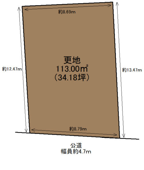 土地面積 113.00m²(34.18坪) 土地面積計測方式